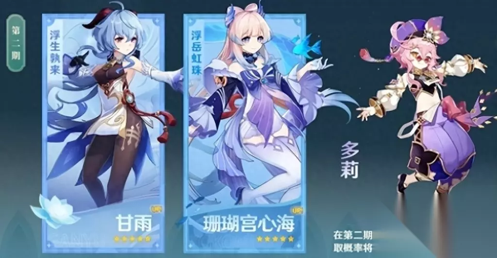 第二期卡池中有两位白发大美女,分别是神里绫华和申鹤,还有一个陪跑的全新四星角色米卡(不是《创造营》里那位)。