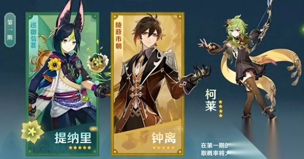 全新五星角色提纳里,四星角色柯莱、多莉来袭。 提纳里会在该版本结束后,在3.1版本中作为常驻角色进入卡池,柯莱、多莉则分别跟随第一期、第二期限时UP卡池登场。 除了三位新角色,两期UP卡池中还有超人气角色钟离、甘雨、心海。又是一个上车的好时机!