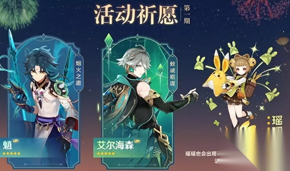 全新五星角色艾尔海森、全新四星角色瑶瑶(喜提萝莉一枚~),与复刻的魈一起出现在第一期UP卡池中。 随新角色上线,全新剧情艾尔海森传说任务《天隼之章·第一幕》开启。