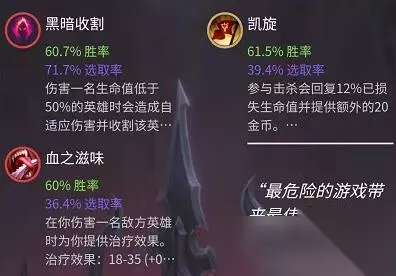 召唤师技能 闪现+屏障 闪现+引燃 天赋推荐 主系天赋:黑暗收割+血之滋味+眼球收集器+贪欲猎手 副系天赋:凯旋+致命一击