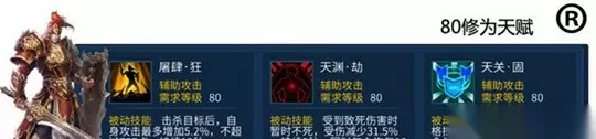 4、屠肆·狂、天渊·劫、天关·固 ①、屠肆·狂,击杀目标自身增加攻击力,适合挂机一条龙带,现在还没看见战甲,有想法的豪可以试一试。 ②、天渊·劫,受到致死伤害不死受伤减少伤害,同时恢复气血,感觉没啥用,都能杀你暂时不死也没输出,毕竟你是肉。 ③、天关·固,增加格挡,增加格挡减伤,抗致命增加,推荐,毕竟甲还是肉一点好,输出让给专业的射手方士异人。