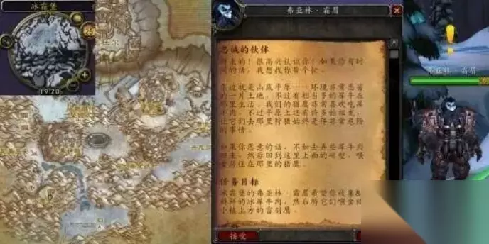 任务具体流程: 1、来到NPC弗亚林·霜眉处,接取任务。