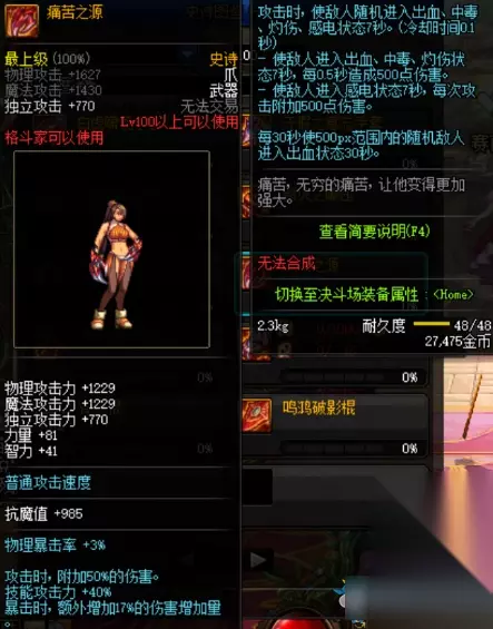DNF在3月底上线了全新的100级版本,而这个新的版本中有很多内容都是全新的,装备升级自然也是更新内容之一,而作为新的装备,和之前的很多内容是不一样的,今天给大家带来的就是关于痛苦之源这件装备的属性介绍。 痛苦之源