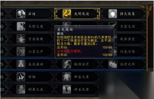 6、第五层天赋选择圣光涌动,治疗有几率触发我们的快速治疗变成瞬发。