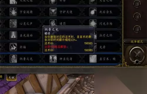 8、最后一层天赋选择纳鲁之光,释放技能可以帮助我们的圣言术的cd大幅度的减少。