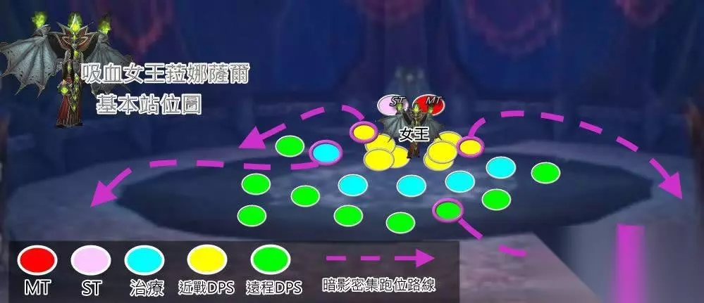 步骤6: 战斗开始2分20秒后,BOSS将移动到场地中心,飞上天空,施放群体恐惧,然后对每个团队成员施放五波微光血箭。群恐后,人与人之间的距离将混乱,远程职业回到初始站位,近战DPS和坦克分散在女王台阶和外围。治疗需要迅速恢复团队,提前分配好AOE治疗,确保人与人之间的距离超过6码,以避免受到伤害。