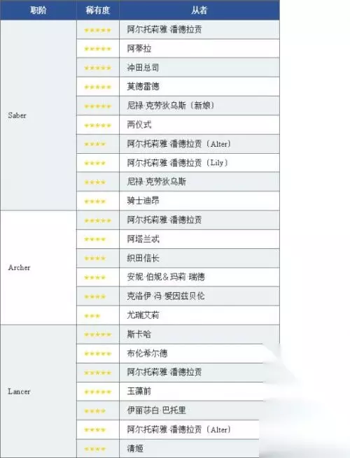 活动礼装有效从者列表 【装备活动限定概念礼装后被付与效果的从者列表】