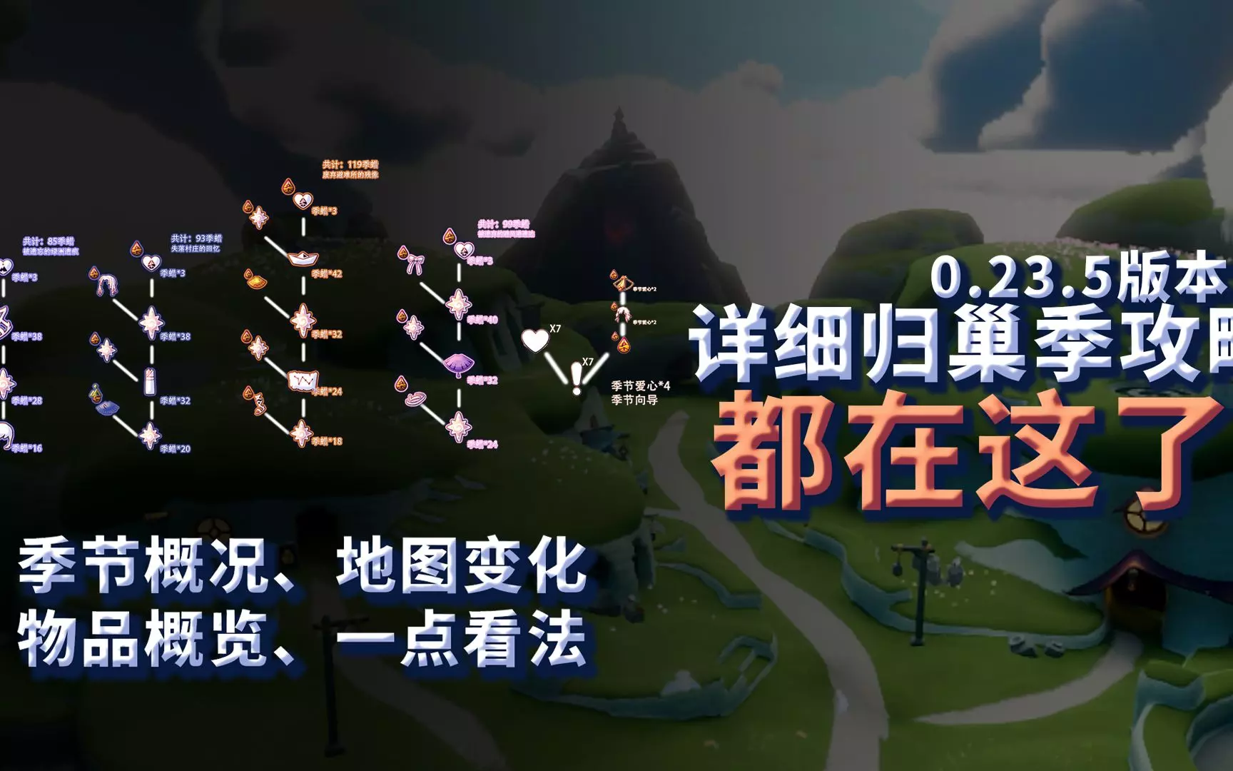 这是冒险游戏《光遇》归巢季的物品复刻攻略,介绍了失落的村庄回忆、遗忘的避风港遗迹等先祖带来的可染色红色蝴蝶结、多彩脏辫发型、斗篷、人字拖鞋等复刻物品,供玩家参考选择。