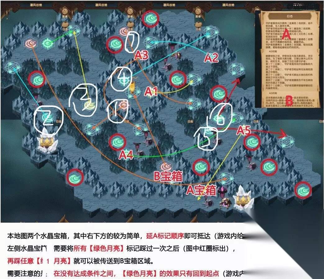 凄风谷地打法攻略 此地图通关难度很大,咱们先打60,进下一个副本,等以后再来打,通关条件别的攻略有,而且我也没通关,参考别人的吧。 打怪简单顺序:先打1和2;然后有三条路线可以选,3、4和重要的A1;因为我有红女妖,我选的3,小伙伴可以三个都试试哪个好打。(这里准备凤凰,老头有奇效,很好用,蝴蝶更好) A1这个很重要,我感觉这个是三个怪里最难的,但能打过这个位置的怪,60就可以完成了,小伙伴可以多试试。 能打过A1这个位置小怪物,就可以继续进A2,走A3、A4,然后先不要进位置5,进6,打完怪物回原点,然后去7号位置,打完去走A5,然后回原点再去打位置5,自此,这个副本简单的就走完了。(走的顺序可以随意,不一定按我的) 其余的可以按隔壁攻略刷遗物,准备蝴蝶等刷通关,楼主没蝴蝶就不刷了。