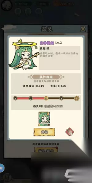 2、器灵,器灵选择,只有一个是必须的,爱神!作为击晕流前中期输出必备,80之后,爱神输出很软了。但是作为击晕流唯一的输出型器灵,每次他多出来的数值,也算是个气势!!另外一个妖狐,只是加了百分之20的击晕,其实试炼中,我经常把她换成输出型器灵来弥补击晕流输出不够的缺陷。尤其是80之后,装备成型,百分之20的击晕基本不太有用了。