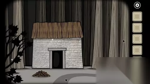 2、前去右边房屋的位置,点击木材收集,进入房屋获取凳子上的蜡烛。