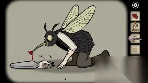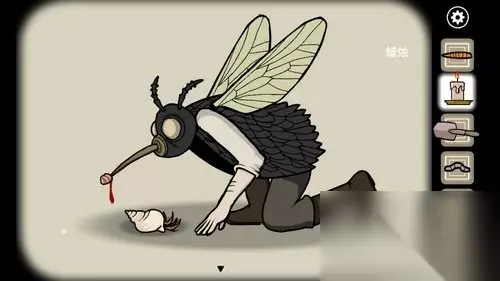 7、完成四关的解谜后苍蝇人出现,点击获得尖嘴上的蟹肉。