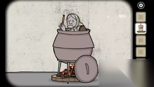 3、把木柴放到锅下面,使用蜡烛点燃木柴,老奶奶从锅里出来获得胡萝卜。