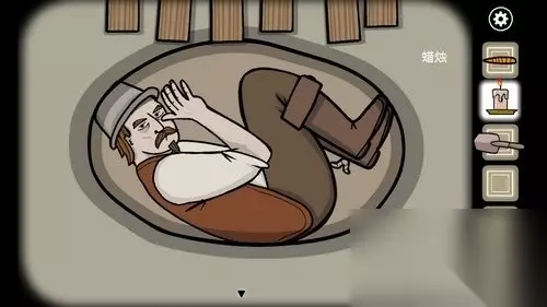 5、进入神庙场景,调查右边的木条,移走木条点击膝盖附近的虫子。