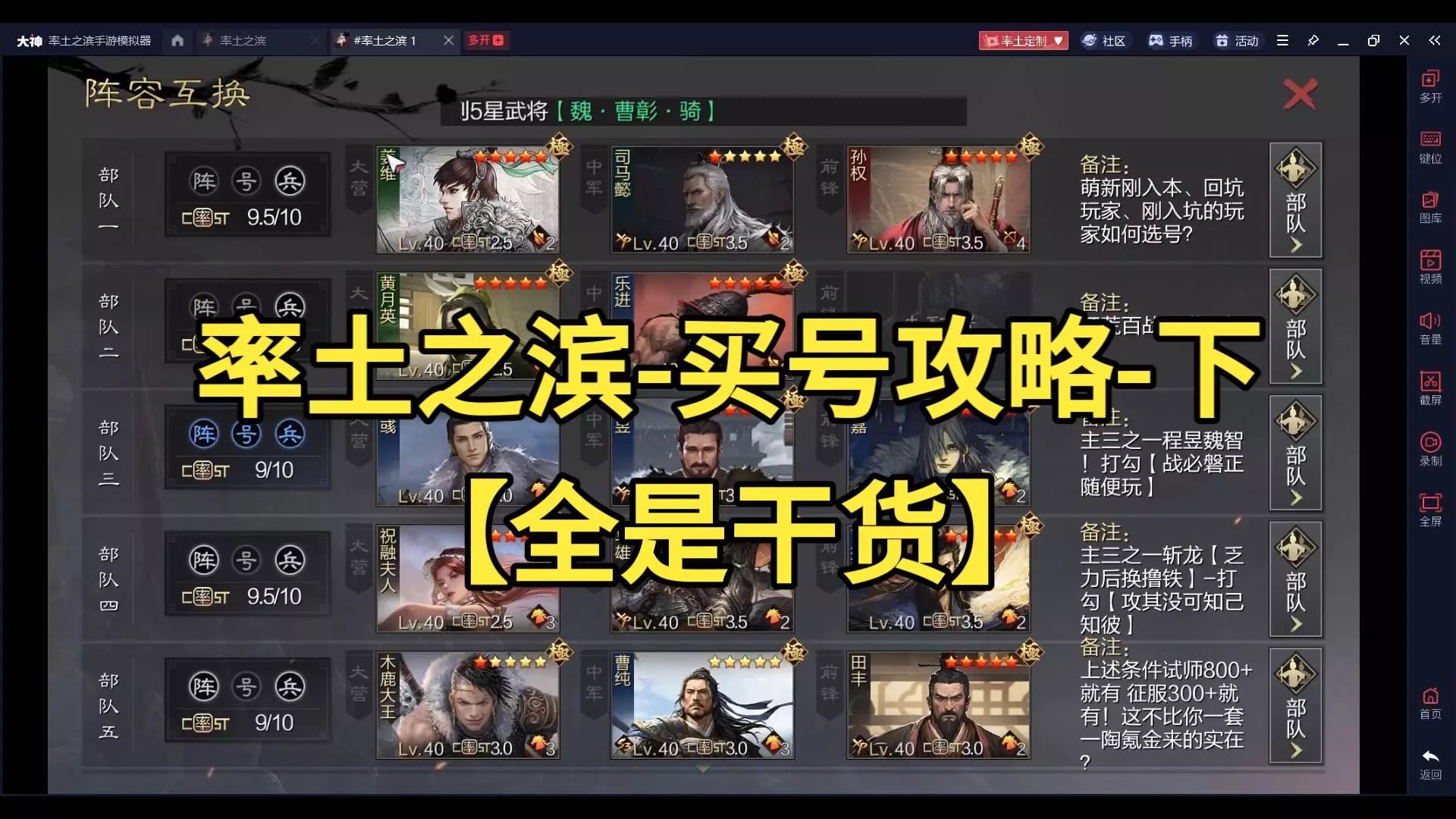 萌新、回归玩家、刚入坑等买号三个方向-乐进百战打勾 程昱魏智打勾 斩龙【附带木鹿转撸铁】打勾 ------ 曹纯体系-以后尽量盯着虎豹刀【田丰曹纯牵条狗】 撸铁…