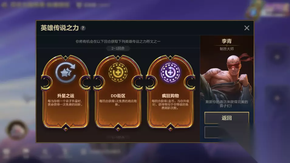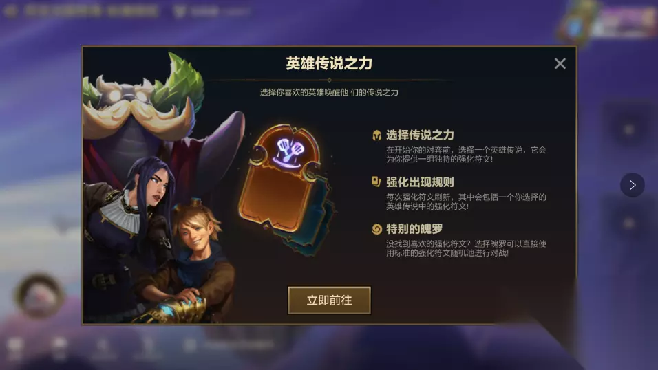 恕瑞玛战神殿 阶段4-7的PvE回合(锋喙鸟)会被替换为一个宝库,可无限重随,每次重随花费2金币。宝库中的战利品都很强力,记得提前多存一些金币啊! 巨神峰 弈士生命值降到40点后,巨神族的神明将从天降下祝福,为你提供战利品——有了这个,就能连败转连胜了! 英雄传说之力:在战斗前规划你的策略 有了英雄传说之力,你就能在战局开始前,对自己拿到的强化符文施加一些影响!从15种独特的英雄传说之力中选择一个,每种都代表着不同的玩法风格。 在对局前装备最喜欢的英雄传说之力,就像配置最喜欢的小小英雄、棋盘或进攻特效一样。