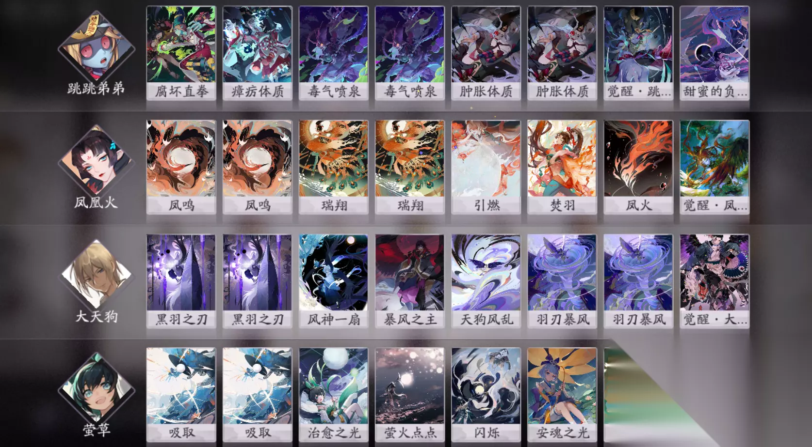 卡组式神:跳跳弟弟、大天狗、凤凰火、萤草