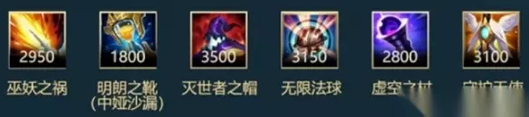 二、英雄出装 1.推荐出装 巫妖之祸、明朗之靴(中娅沙漏)、灭世者之帽、无限法球、虚空之杖、守护天使