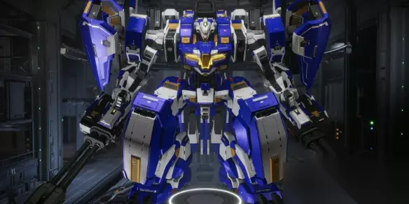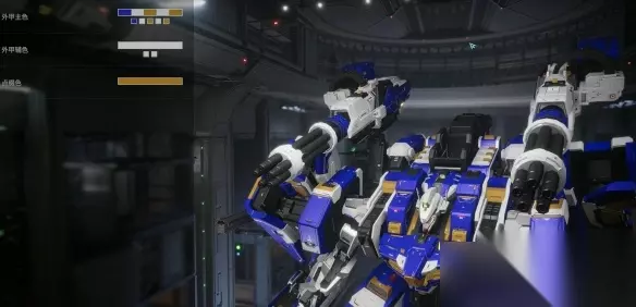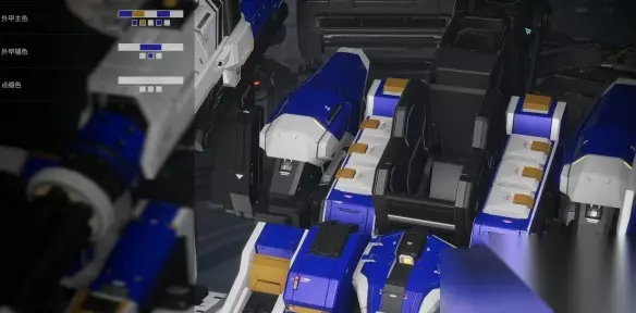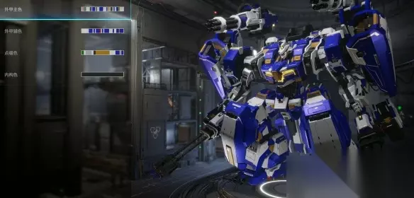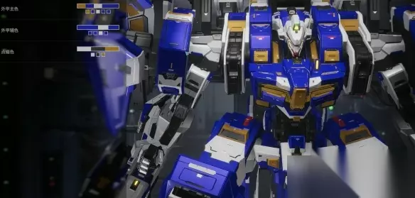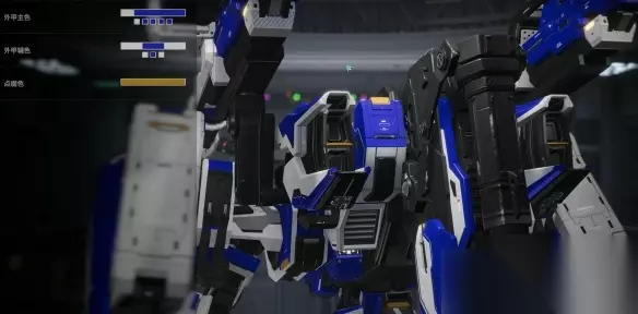 【解限机全机甲涂装方案攻略】 解限机三角龙雪崩能天使 整机:整体以蓝色+水银色为主,中间部分主色为黑色,剩余部分会少量用到黄绿+棕色+灰色