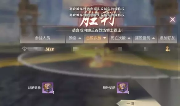 1.胜利方奖励 城战胜利方参与城战所有帮派成员必得3级降魔印章20个和帮贡45点,可随机获得黑暗降魔印章1个。 2.失败方奖励 城战失败方参与城战所有帮派成员必得3级降魔印章10个和帮贡25点。 3.MVP奖励 城战表现的MVP必得3级降魔印章10个和帮贡25点。 4.领地日俸禄 成功占领1级领土的帮派,每个帮派成员,可在本周日~下周六每天获得幸运灵符1个、2级黑暗印章20个、绑定藏宝图2张、元神丹2个、聚元石2个、银元宝100。 成功占领2级领土的帮派,每个帮派成员,可在本周日~下周六每天获得幸运灵符1个、2级黑暗印章15个、绑定藏宝图2张、元神丹2个、聚元石2个。 成功占领3级领土的帮派,每个帮派成员,可在本周日~下周六每天获得幸运灵符1个、2级黑暗印章10个、绑定藏宝图2张、元神丹2个。 如果中途因为帮派资金不足导致的领土丧失,是不能够获得后续的奖励的。 5.帮派可拍卖奖励 占领或成功守卫1级领土的帮派,必得黑暗降魔印章7个和1级元麟3个;占领或成功守卫2级领土的帮派,必得黑暗降魔印章5个和1级元麟2个;占领或成功守卫3级领土的帮派,必得黑暗降魔印章3个和1级元麟1个。 所得奖励进入拍卖行拍卖后,由出价最高的本帮派成员获得,拍卖所得收益由系统自动分配给本帮派参与城战的成员。 参与城战无论胜负皆可获得声望奖励,成功占领领土还可能获得独占称号和每日声望奖励;占领了二级领土或者一级领土的帮主还会有酷炫称号。各位修真者为了这些丰富的奖励,在城战中一定要加倍努力哦。 声望奖励:降魔·黑暗印章,使用后获得500点声望;2级黑暗印章,使用后获得4点声望。声望可以用来晋升军衔。 更多城战TIPS 1、领土放弃:在宣战,和战场期间以外,可以主动放弃部分领土来达到自己的战略目标。 2、领土维护:成功占领了领土的帮派每天都要消耗一定的帮派资金来对领土进行维护,当维护费不足的时候会自动放弃占领对应的领土。 3、修真者对塔造成的伤害极低,只有攻城车能造成可观伤害。建议坦克妖兽(妖兽打啥都是第一个呢)在前面开路,带着攻城车来到对方塔下,和后排输出一起集中火力迅速打掉塔。 4、在城战过程中,只要对方阵营任何一路防御塔比我们更快的崩掉,那就意味着我方已经占据了极大的优势。 5、都说艺高人胆大,自信的修真者也可以尝试在不怕队友喷的情况下浪一波,单独行动找刺激,也许会有意想不到的收获和惊喜哦。 6、帮派斗争瞬息万变,稍有不慎,付出的代价就是土地!通常在帮派出价环节时,“江湖”上会大量存在着“007”,各帮派为了摸清对手的出价“不择手段”也是常规操作。大家要谨慎小心哦~ 以上便是小编为大家带来的完美世界手游城战系统攻略详解,希望能帮到各位玩家。
