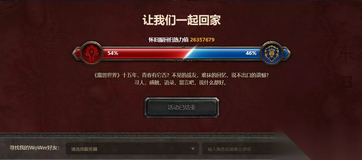 《魔兽世界》怀旧服游戏中,玩家可以在官网查询角色信息,搜索魔兽世界怀旧服官网并进入,可以在主页看到搜索好友一览,输入想要查询的服务器和角色名或者公会名就可以查询了。