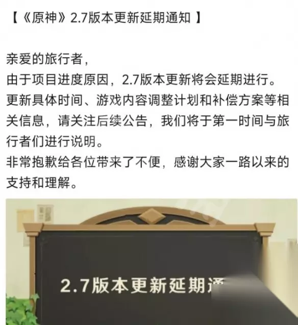 原神2.7前瞻直播是什么时候?有很多玩家都在期待2.7版本的最新消息,不过官方之前公布了2.7版本延期的消息。下面为大家分享一下前瞻直播以及新版本上线的时间,想要了解的玩家不妨一起往下看吧。 原神最新2.7前瞻直播时间 1、目前官方尚未公布新版本的直播时间以及上线时间,网传的小道消息是相较于之前会延期21天,那么预计是在5月20日前后进行直播或者更新;