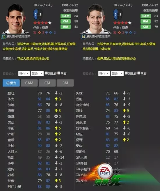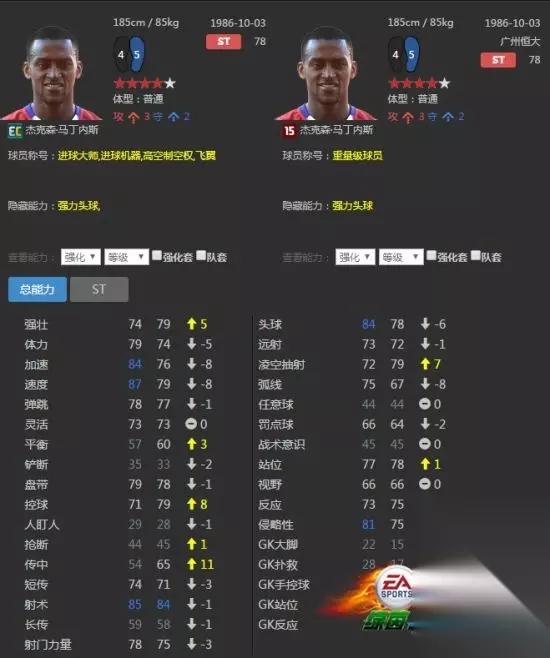 杰克森·马丁内斯的16EC卡跟15中国联赛赛季卡位置能力值一样。打中锋都是78点的能力值。但是16EC卡更快,射术及头球能力都比15中国联赛赛季卡更好。数值中蓝色的项目也比较多,称号也比较多。所以选择16EC赛季会更好一些,更重要的是15中国联赛的杰克森·马丁内斯产出极少。 看了上文233乐园小编带来的《FIFA Online3》哥伦比亚套16EC球员推荐,你是否了解了相关内容信息,知道了呢!更多最新最好玩的手机游戏就来233乐园下载吧! 如转载涉及版权等问题,请作者与我司联系,我司将在第一时间删除或支付稿酬。