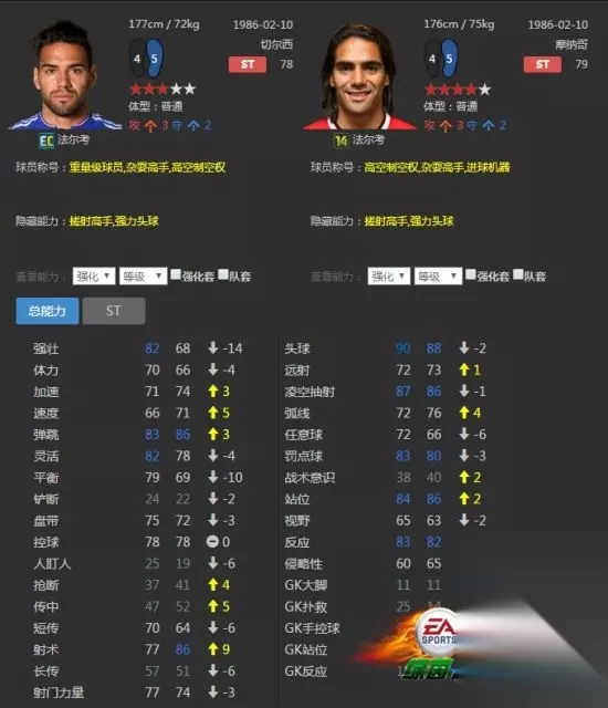 虽然看起来是14W的法尔考中锋能力更高一点,但是细看各数据的话就会发现16EC的法尔考更强壮。短传以及身体的灵活度也更好。所以在这里我选的是16EC的法尔考。 16EC马丁内斯
