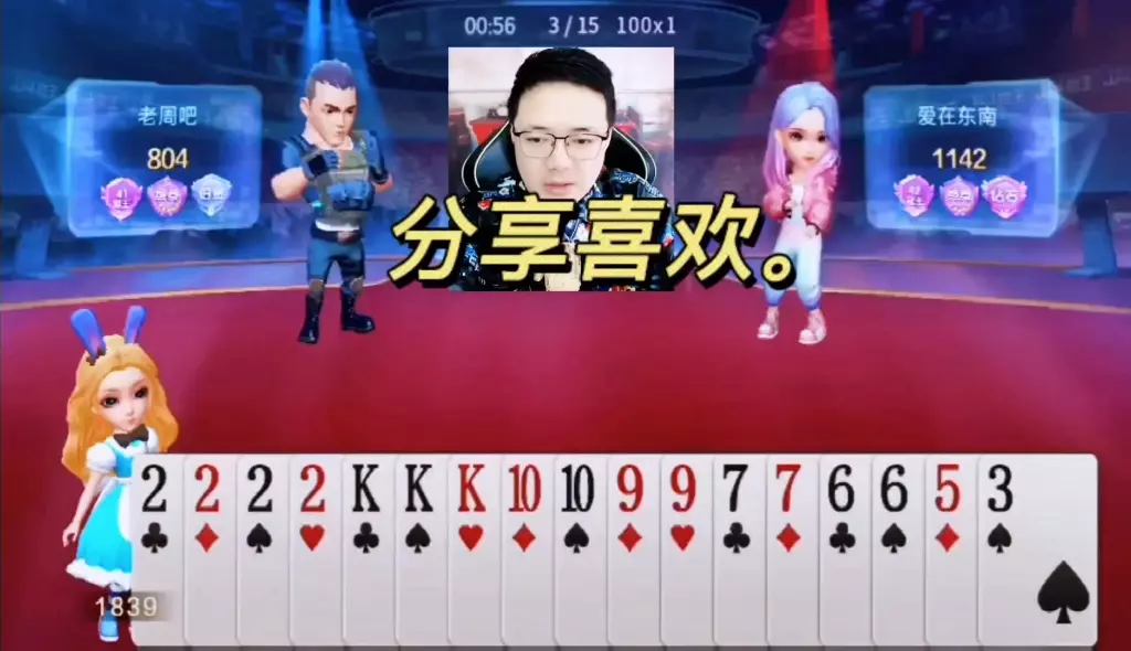 三岁玩牌破釜沉舟四个3的大胆一炸后期残局细腻的行牌为自己争取到了胜利!