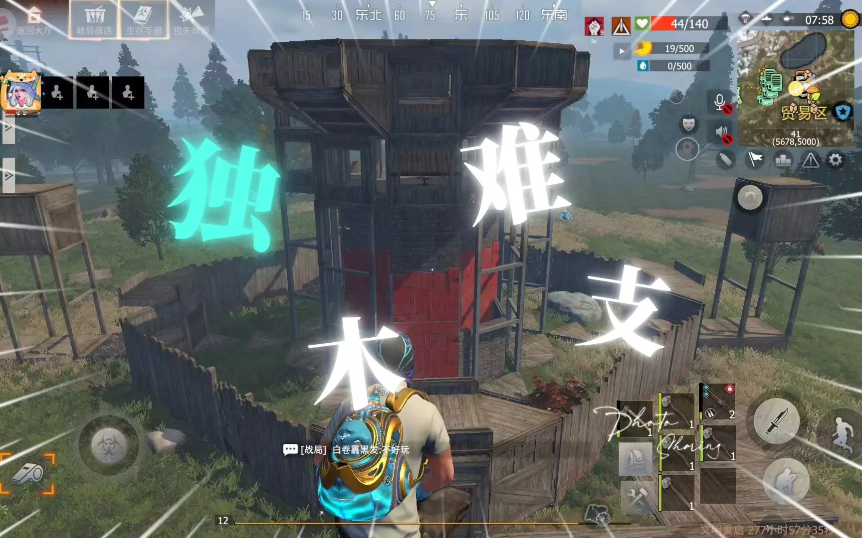 玩家分享生存游戏《王牌战争》无人岛模式体验,认为该模式地图偏小,还展示了游戏内回收分解机分解物资、商城购买武器弹药与道具、领取进服物资等玩法内容。