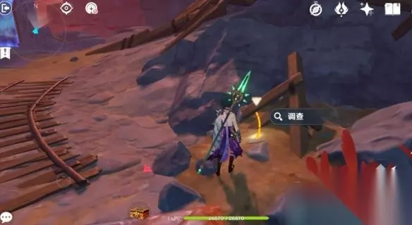 人物站的这里有个调查,暂时不知道什么用,先点了再说,接着在背面有个墙,用元素视野可以看得到。