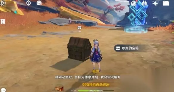 对话结束自动传送,这里有个珍贵宝箱,然后退出秘境,出去自动进入对话环节。