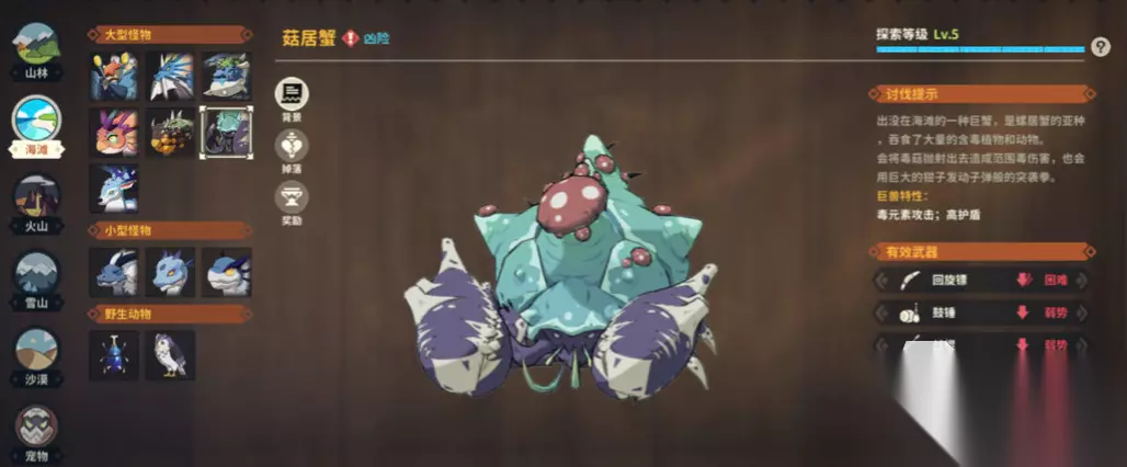 狩猎时刻怪物图鉴是游戏内的一个特色功能,每击败一种怪物就会在图鉴内解锁对应击败的怪物,狩猎时刻这款游戏中有非常多的怪物,这些怪物种类繁多,从天上飞的到水里游的,很多小伙伴就想要了解到游戏内的所有怪物,提前了解这些怪物的特性对以后打倒他们收集图鉴有帮助,本期就会给大家介绍一下游戏内的各式怪物,下面一起来看看吧。