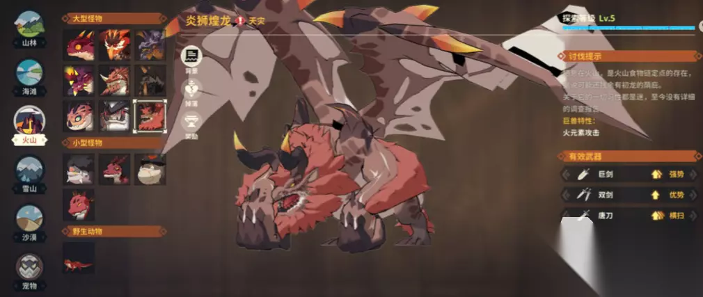 从兽龙种开始,兽龙种内的怪物有有猛毒龙、裂岩沙龙、狐鼬龙、沉水巨颚龙等等,这些兽龙种的怪物在野外的等级都不高,兽龙种的怪物在游戏里算是中低阶层,极少会出现难打的怪物,对于兽龙种怪物的攻略一般不需要记太多的点,只需要带足血瓶看好怪物属性带好对应属性的药,在战斗种勤躲技能基本就可以顺利拿下战斗,如果战斗有星级划分,兽龙种的怪物大部分在1-2星及少数达到3星。