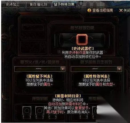 dnf史诗武器怎么制作?可能有很家都想要更精准的了解新版史诗武器制作流程,以及制作出更完美更有爆发力的史诗武器,下面小编为大家整理了关于新版史诗武器制作流程,一起来看看吧。 一、自制史诗的流程 首先介绍一下 大体流程[史诗制作方法] 制作催化剂-史诗加工-完成后赋予特效/属性攻击 [碳结晶体] 在制作史诗的过程中每次需要1个 55级消耗疲劳地图中 都可以掉落 了解一下 需要的材料 1.催化剂 催化剂有五个等级 普通-中级-上级-特殊-最上级 普通催化剂 几乎所有辣鸡材料都可以,但是材料的品级直接影响数量 中级催化剂 6种特级类材料即可 如特级硬化剂 上级催化剂 70-85粉武器-只能常规粉色武器和圣物系列 神器灵魂 -一个武器可以制作4-5个上级催化剂 特殊催化剂 需要任务传说武器,必须任务所得,包涵复苏之风 远古 一把武器 一个催化剂 最上级催化剂 次元光辉及传说灵魂制作