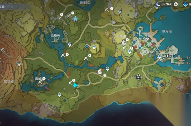 《原神》璃月南部水晶矿采集路线