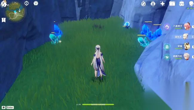 7.群玉阁左边传送锚点,无需转视角,滑翔到瀑布底下,左手边矿洞一个火法师守着3个水晶矿(魔晶矿刷新时会多出2个水晶矿、3个魔晶矿)