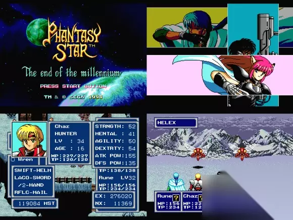 很难想象,一款游戏游戏的制作得如此严谨,我们甚至可以将其当成是一本迷上航海图。 当年为了熟悉经纬,多少玩家进行过测量?后期甚至已经发展到了如指掌。 《梦幻之星4》 一直以来《梦幻之星》都是MD比较有代表性的游戏。 在游戏发行之后,瞬间将整个MD平台的游戏RPG质量提升了一个档次。在投票的数据中我们不难发现《梦幻之星4》绝对有资格成为MD平台最经典的RPG游戏前三名。 可以抗衡SFC《最终幻想6》的游戏只有它。