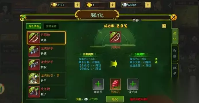 一、 装备合成系统的介绍 在热血江湖手游中,玩家可以将自己的装备进行合成,意在提升自己的战斗力。合成需要金刚石、玲珑石、寒玉石、热血石,这些石头也是有等级的,分为白色、蓝色、紫色、橙色和红色,等级越高的石头合成附加的属性就越高,而想要得到这些石头,则需要玩家击杀怪物,才有可能掉落,其次就是可以商城和拍卖行购买。装备合成也是拥有成功率的,四级合成属性,合成第一级,成功率100%,第二级成功率50%,第三级成功率10%,第四级成功率5%,由此可以想象失败率有多高,需要大量的石头才经得起消耗。 二、 装备合成的技巧 1. 选择合适的装备 在进行装备合成时,选择合适的材料和装备至关重要。比如武器就需要提升攻击力的石头,护甲就需要提升防御力的石头,这样是最佳搭配,当然加其他属性也是可以的,只不过效果没那么好罢了,只有在你选择的装备越好时,你得到提升就越高,因此,你必须选择最好的材料和装备来合成。 2. 合成之前先了解装备属性 在热血江湖手游中,每个装备都有它自己的属性。合成装备时,我们必须了解每个装备的属性,以确保合成后的新装备能够更好的发挥作用,强化角色的能力。