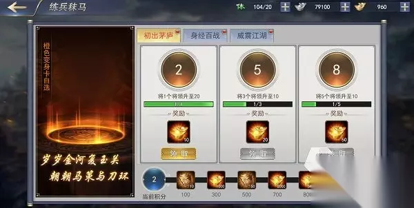 2.全服拍卖 除了招募之外,游戏只剩一处获得橙色武将的地方,那就是全服拍卖。这里可以花费元宝来获得橙色武将碎片,来达成理想的阵容。 3.练兵秣马 完成这里的任务能够获得相当数量的招募令,此外将全部的新手任务完成后,还可以获得一张橙色变身卡,这张变身卡能够将主角变成任意橙色武将,相当具有创意。