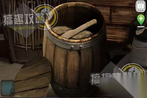 用撬棍打开木桶,拿到木棒。