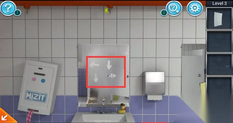 【《密室逃脱3:逃出办公室》全关卡通关攻略汇总】 第3关攻略 1、首先我们先点击门边洗手台,在洗手台的右侧有一卷手纸,点击收集,接着点击镜子正上方喷水喷头,洒出的热水升腾起的水蒸气会让镜子中出现4个方向箭头。