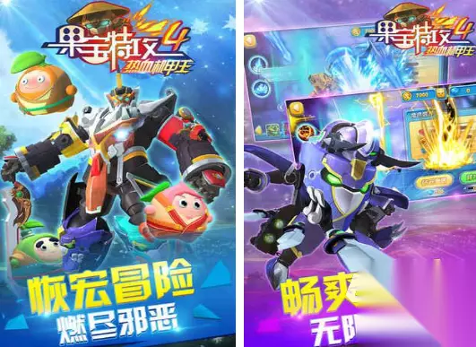 在游戏中你可以操控橙留香,还有菠萝吹雪等一系列角色。让他们在三种形态中自由的切换。游戏所采用的是全三维的制作,有华美的特效,还有细腻的画面吸引了不少的玩家。在对决的过程中,你还可以通过霸气合体直接变成武神任意的调换角色,再搭配技能之后,也能感受到更有趣味性的格斗体验。 》》》》》#果宝特攻4机甲#《《《《《 3、《果宝烈焰机甲王》