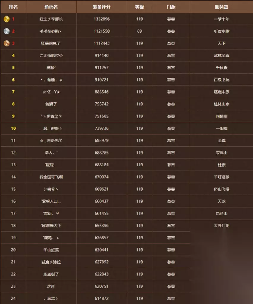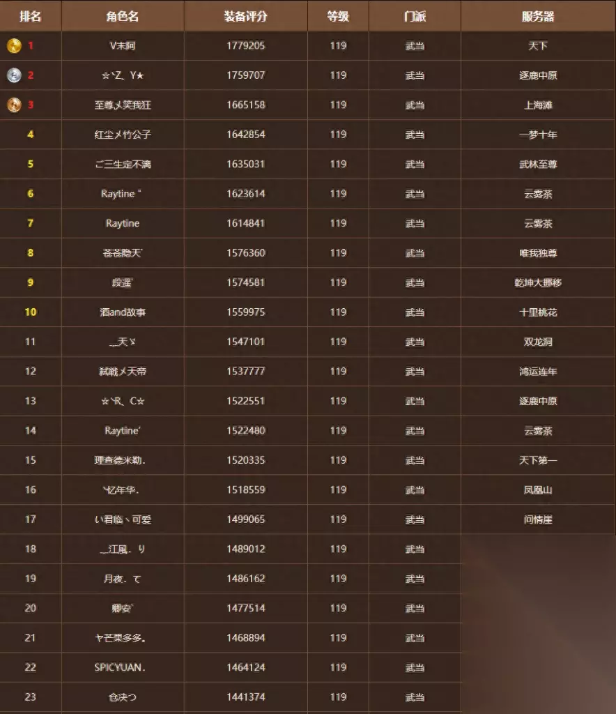 从这里我们也能看出来当前《天龙八部》中一个尴尬现象,之前以系数成长引以为傲的单属性门派在当前版本中的迷失。虽说这个排名只在一定程度上反映了门派强弱,但主要是反馈各个门派的可玩性。一个门派,哪怕PK,副本,团战再弱,只要技能冷却短,有可玩性,都会有人玩。