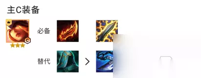 四、装备选择 1、主C装备选择 轮子妈羊刀电刀必备,这两件提供大量攻速和技能启动时间,很适合希维尔。第三件可以选择巨杀或者水银,如果对手阵容的控制多就选择水银,对手阵容比较肉的话可以选择巨杀提高清场能力。