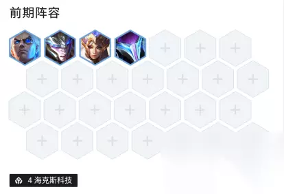 六、运营打法 1、过渡阵容 前期推荐直接用海克斯棋子进行过渡,便宜且强度高,更不需要变阵。可以用乌鸦、皇子、猪妹、梦魇组成4海克斯羁绊,前期战力还是很强的。