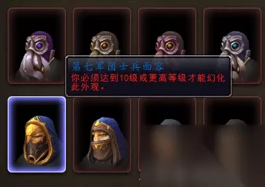 包括各种套装外观,无论是团本套装外观还是PVP套装外观,统一变成了10级即可幻化(图为我一个10级DK可以幻化8.3的套装):