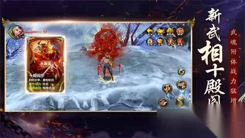 【新武相十殿阎罗,武魂附体战力猛增】 他掌管地狱轮回,他审判生前善恶,新武相十殿阎罗附体而战!新武魂在血量与战力的双重加持上表现突出,让角色属性瞬间暴涨、浴血杀敌,再也不担心身板单薄受人欺负了!新武相外观仿佛一个六臂天尊盘坐于大殿之上,通体被赤红光效围绕,战斗带上它不仅安全感爆棚,而且有如来神掌祝你一臂之力的感觉!