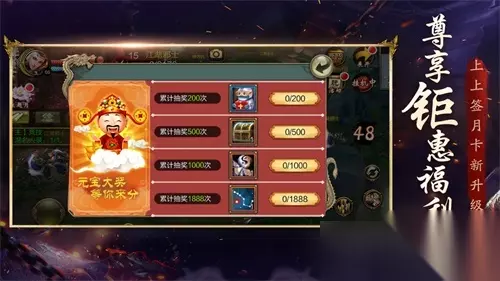 【尊享钜惠福利满,上上签月卡新升级】 好礼送不停,福利又加倍!尊享钜惠有加成,每日首次完成【聚贤庄】【燕子坞】【珍珑棋局】【燕王古墓】副本可获得额外礼包奖励,礼包不随副本掉落,将以月卡功能发放;上上签抽奖感受提升巨大,增加了保底奖励,非洲人也能体会欧皇待遇!