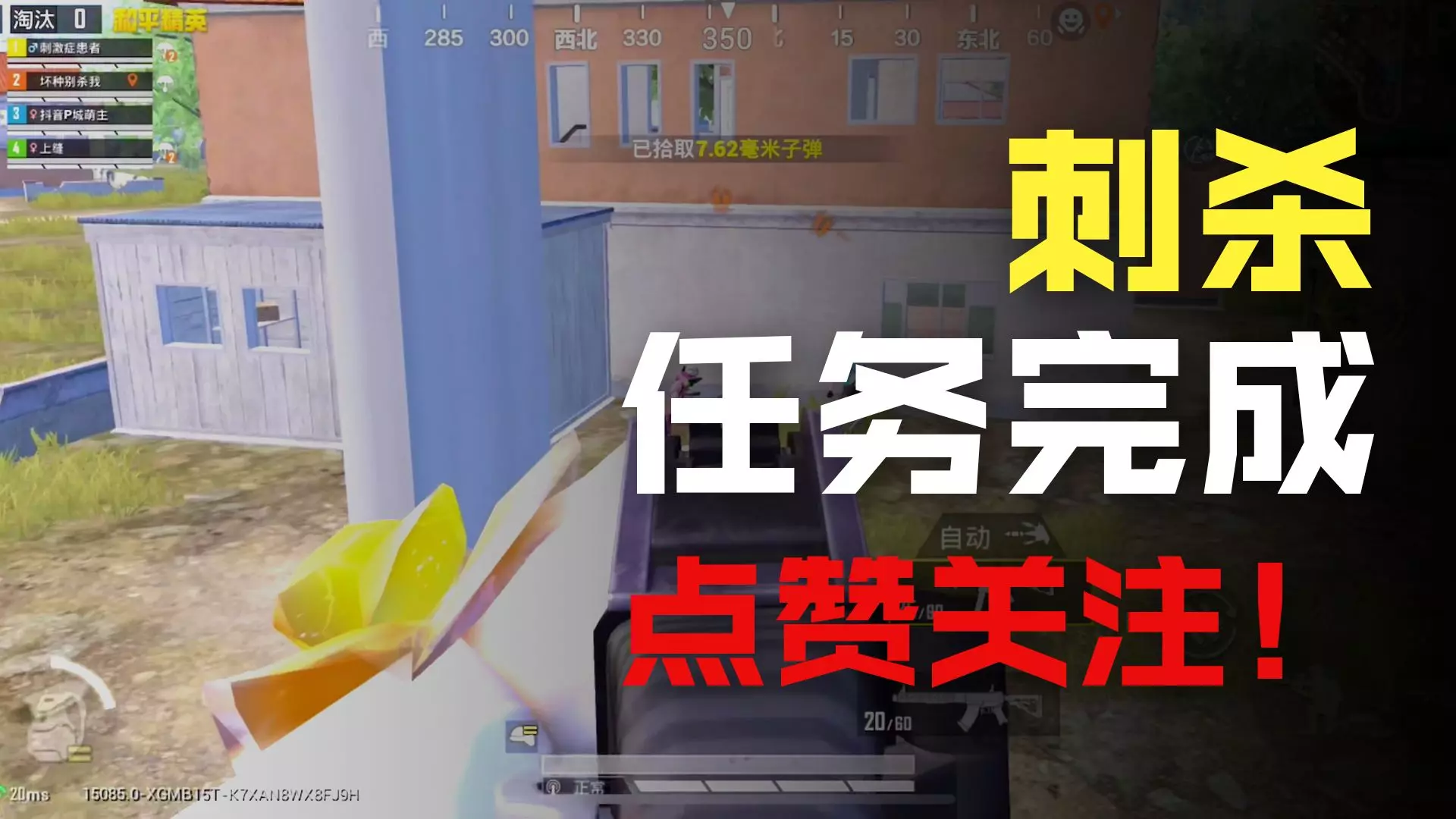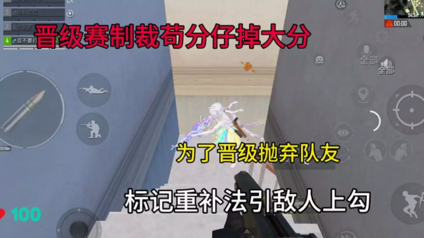 这是《和平精英》的游戏内容,玩家在绝世晋级赛中,遇到为了晋级抛弃队友的苟分玩家,对其跟踪十分钟后将其逮住并击倒,成功制裁该苟分仔。